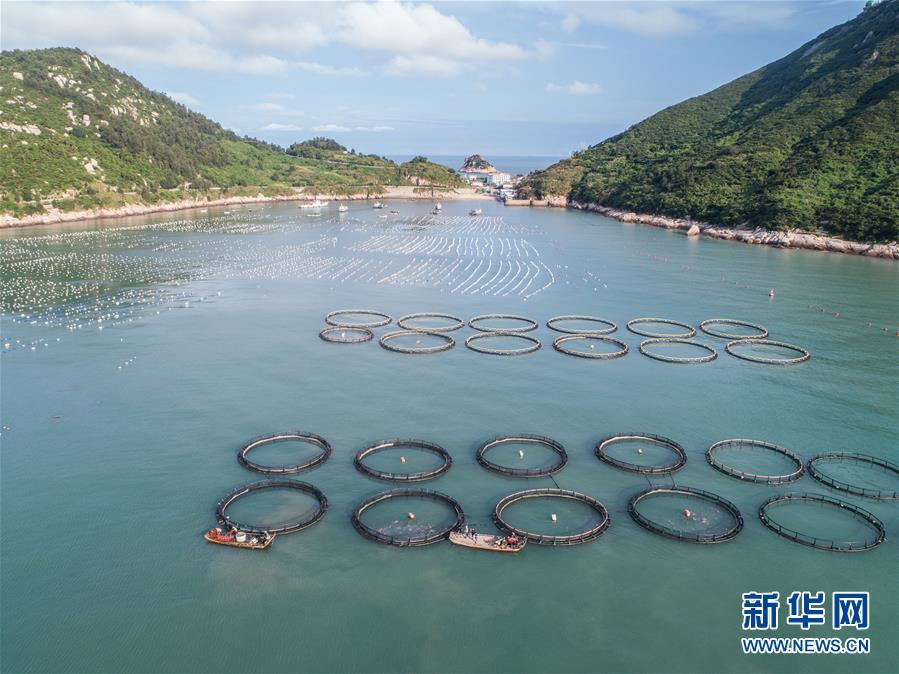 8月19日,空中俯瞰南麂島全景(無人機拍攝)。進入8月,浙江省溫州市平陽縣南麂鎮(zhèn)海域上大片的大黃魚、貽貝等特色海產(chǎn)品養(yǎng)殖區(qū)域迎來豐收季節(jié),養(yǎng)殖戶們駕駛漁船在養(yǎng)殖區(qū)海域進行打撈收獲,在碧海藍天下構(gòu)成了一幅“海上牧場”的美麗豐收景象。近年來,南麂鎮(zhèn)政府引導(dǎo)漁民養(yǎng)殖戶充分發(fā)揮“靠海吃?!钡馁Y源優(yōu)勢,大力發(fā)展海洋養(yǎng)殖經(jīng)濟和海島旅游經(jīng)濟,實現(xiàn)了南麂由“生態(tài)美”向“產(chǎn)業(yè)美”,“產(chǎn)業(yè)美”向“經(jīng)濟美”的轉(zhuǎn)變。同時該鎮(zhèn)堅持以大黃魚、貽貝等為特色產(chǎn)業(yè)支撐,精準(zhǔn)發(fā)展高效海洋養(yǎng)殖業(yè),重點培養(yǎng)一批新型職業(yè)漁民,依靠專業(yè)技術(shù)支持,實現(xiàn)深海仿生養(yǎng)殖,讓好生態(tài)造就好品質(zhì),重點打造南麂養(yǎng)殖品牌,組建營銷網(wǎng)絡(luò),拓展特色海產(chǎn)品市場。新華社記者 徐昱攝