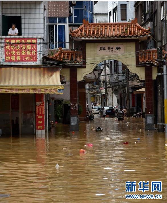 9月18日,陽春市勝利街積水嚴(yán)重。 新華社記者 周科 攝