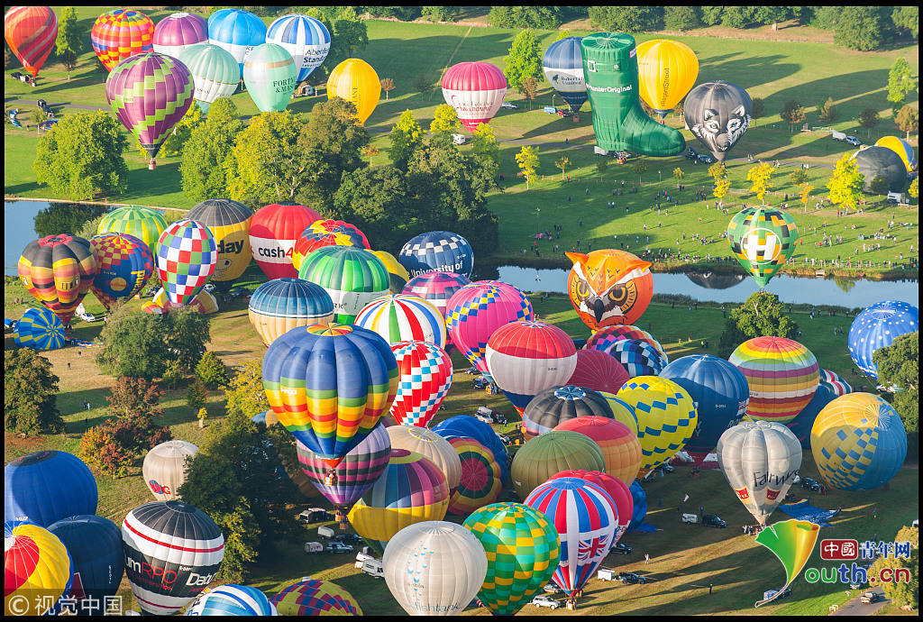 形態(tài)各異、顏色鮮艷的熱氣球一同升空,非常壯美。