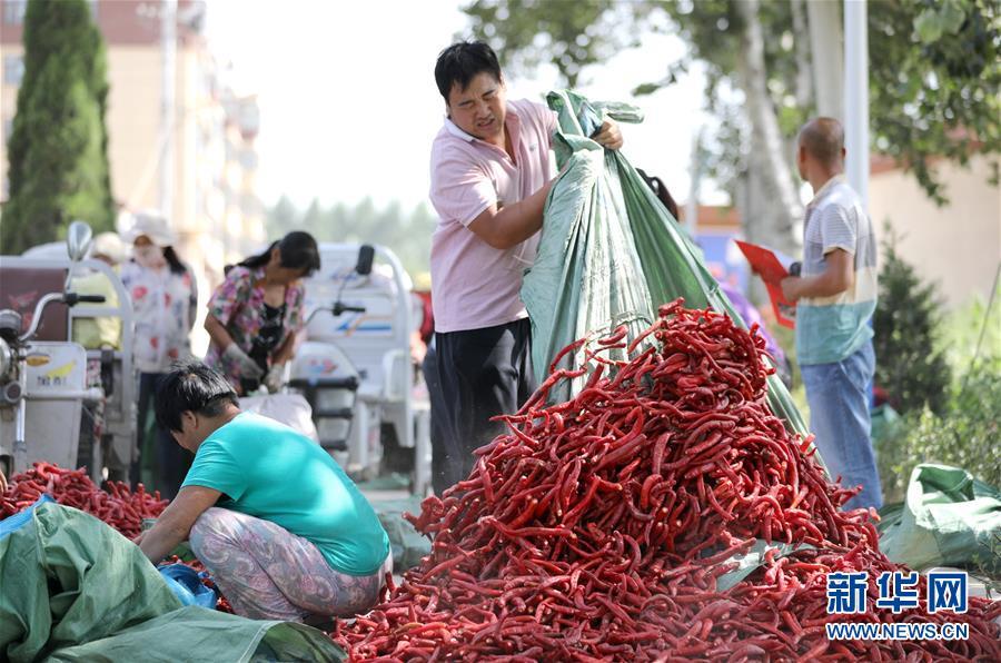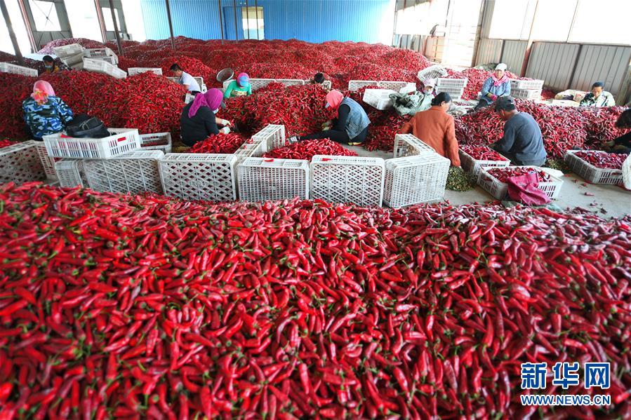 9月16日,阜城縣王集鄉(xiāng)南張莊村農民在整理收獲的辣椒。近年來,河北省阜城縣王集鄉(xiāng)在推進產業(yè)富民過程中,積極引導農民調整農業(yè)產業(yè)結構,按照品種特色化、種植規(guī)?;?、產銷一體化的“公司+基地+農戶”的經營模式,鼓勵農民發(fā)展特色辣椒種植,推行“訂單種植”模式,開辟出了一條農民創(chuàng)收新路徑。目前,阜城縣王集鄉(xiāng)辣椒種植面積3100余畝,每畝年收益2500元以上,帶動當地農民實現增收。新華社記者朱旭東攝