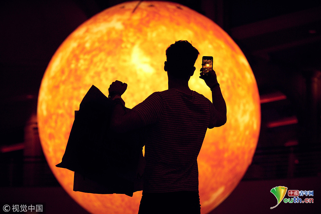 當(dāng)?shù)貢r(shí)間2018年9月18日,英國曼切斯特,顧客們在特拉福德購物中心的一個(gè)巨型的“太陽”下享受室內(nèi)日光浴,感受英國未完的史上最熱夏天。這個(gè)人造“太陽”的亮度相當(dāng)于1.2萬個(gè)燈泡。圖片來源:視覺中國
