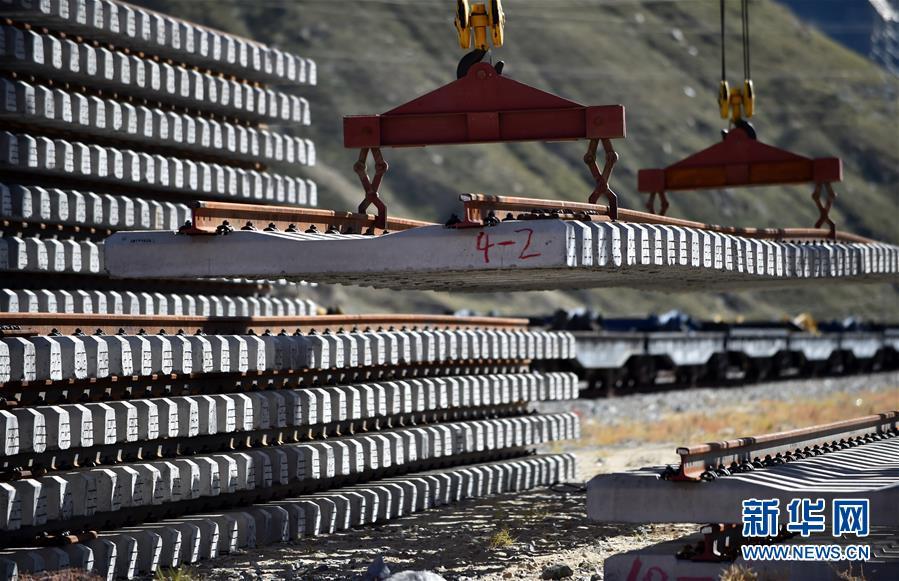 9月19日,在位于西藏拉薩曲水縣的中鐵十一局三公司協(xié)榮鋪架基地,用于架設(shè)川藏鐵路拉薩至林芝段(拉林鐵路)的首批軌排完成生產(chǎn)下線(xiàn)。據(jù)悉,拉林鐵路鋪軌任務(wù)全長(zhǎng)400余公里,需要生產(chǎn)軌枕44萬(wàn)多根。 新華社記者 覺(jué)果 攝