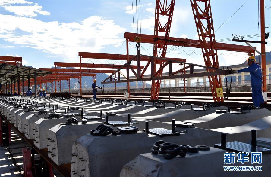 9月19日,在位于西藏拉薩曲水縣的中鐵十一局三公司協(xié)榮鋪架基地,用于架設(shè)川藏鐵路拉薩至林芝段(拉林鐵路)的首批軌排完成生產(chǎn)下線。據(jù)悉,拉林鐵路鋪軌任務(wù)全長(zhǎng)400余公里,需要生產(chǎn)軌枕44萬(wàn)多根。 新華社記者 覺果 攝