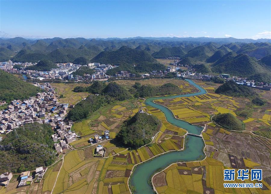 這是廣南縣八寶鎮(zhèn)壩龍村的田園景色(9月20日無人機拍攝)。 云南省文山壯族苗族自治州廣南縣八寶鎮(zhèn)今年種植優(yōu)質水稻22000余畝,秋收季節(jié),田野里一片金黃,景色如畫。 新華社記者楊宗友攝