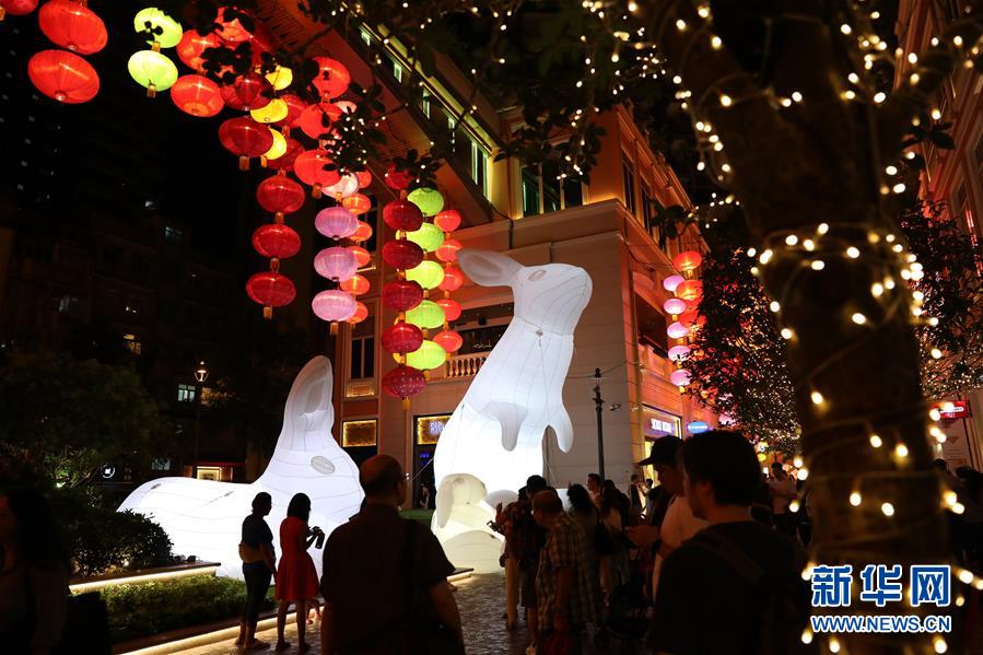 9月21日,彩色燈籠和“月兔”花燈裝扮香港利東街夜景。中秋節(jié)臨近,香港喜慶氣氛日濃。新華社記者吳曉初攝