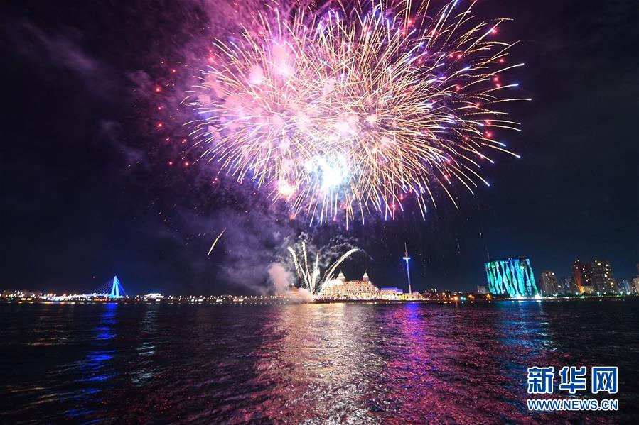 9月23日在淡水漁人碼頭拍攝的煙花秀。當(dāng)日,臺(tái)灣淡水漁人碼頭舉辦煙花秀,迎接中秋佳節(jié)。 新華社記者 金良快 攝