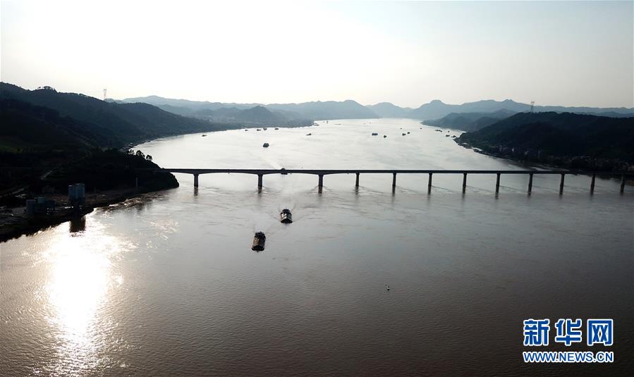 這是船舶從西江黃金水道潯江廣西梧州段通過(9月21日攝,無人機航拍)。 新華社記者 周華 攝