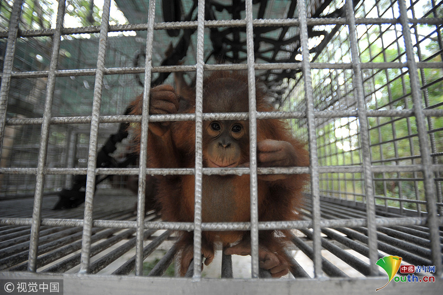 當(dāng)?shù)貢r(shí)間2018年9月18日,印尼加里曼丹克塔邦,國(guó)際動(dòng)物救援(IAR)猩猩安全與保護(hù)中心里。圖片作者:Newscom