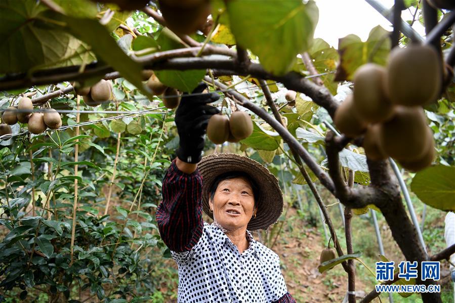 9月25日,在肥西縣銘傳鄉(xiāng)劉老圩獼猴桃種植基地,農(nóng)民在采摘獼猴桃。新華社記者劉軍喜攝