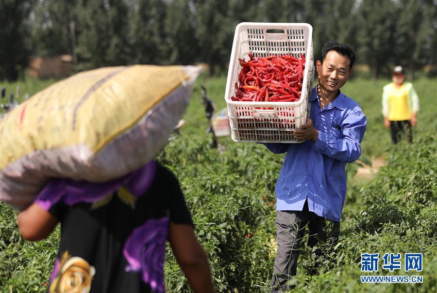 9月16日,阜城縣王集鄉(xiāng)南張莊村農(nóng)民在搬運(yùn)采摘的辣椒。近年來(lái),河北省阜城縣王集鄉(xiāng)在推進(jìn)產(chǎn)業(yè)富民過(guò)程中,積極引導(dǎo)農(nóng)民調(diào)整農(nóng)業(yè)產(chǎn)業(yè)結(jié)構(gòu),按照品種特色化、種植規(guī)?;a(chǎn)銷一體化的“公司+基地+農(nóng)戶”的經(jīng)營(yíng)模式,鼓勵(lì)農(nóng)民發(fā)展特色辣椒種植,推行“訂單種植”模式,開辟出了一條農(nóng)民創(chuàng)收新路徑。目前,阜城縣王集鄉(xiāng)辣椒種植面積3100余畝,每畝年收益2500元以上,帶動(dòng)當(dāng)?shù)剞r(nóng)民實(shí)現(xiàn)增收。新華社記者朱旭東攝