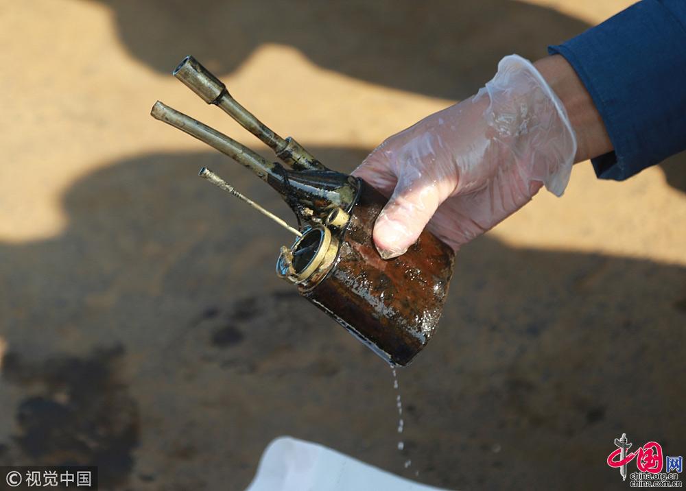 2018年9月25日,遼寧大連,在莊河黑島海域甲午戰(zhàn)爭“經(jīng)遠艦”遺址出水的各類遺物標本。視覺中國