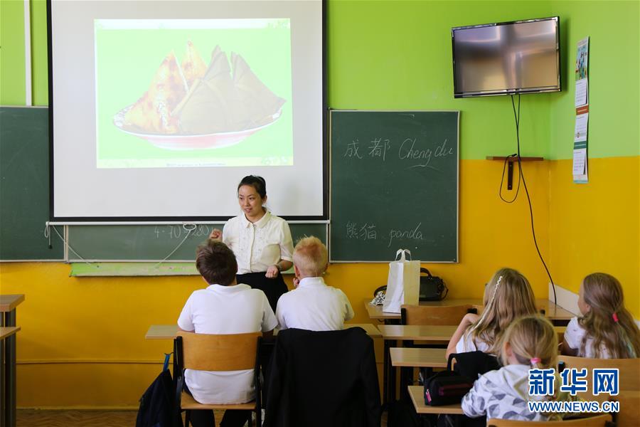 9月25日,在波蘭羅茲第一小學,成都青白江區(qū)外國語小學老師李艷向波蘭小學生介紹中國美食。成都青白江區(qū)外國語小學與波蘭羅茲第一小學25日在波蘭中部城市羅茲簽署友好學校合作協(xié)議。這是繼成都與羅茲2015年結(jié)為友城之后,兩座城市人文交流合作的又一新成果。2013年,東起成都青白江、西至羅茲的中歐班列(蓉歐快鐵)開通。5年來,來往兩地的班列不斷增加,有力促進了成都與羅茲在經(jīng)貿(mào)、教育、文化等多領(lǐng)域的交流與合作。新華社記者 陳序 攝