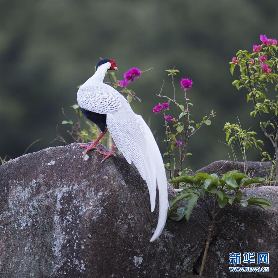 9月27日,在南靖縣鵝仙洞自然保護區(qū)內(nèi),一只白鷴在山石上停留。 新華社記者 梅永存 攝