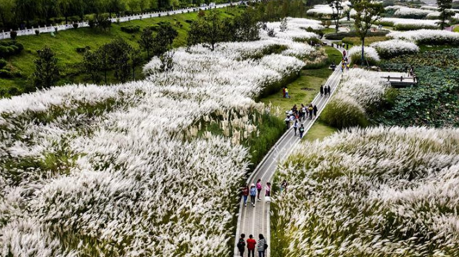 上海楊浦濱江粉黛亂子草成片盛開 美 ...