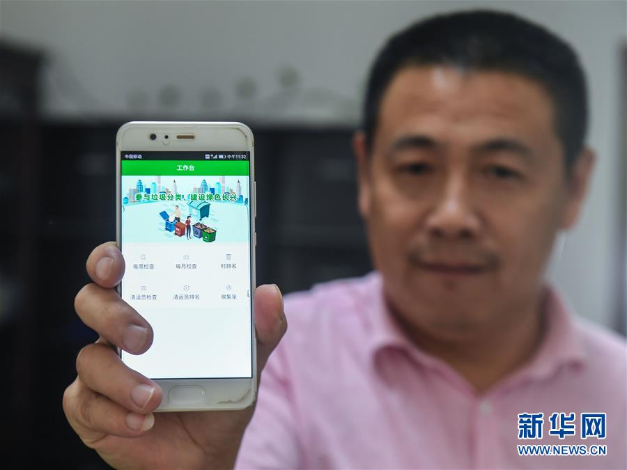 9月27日,工作人員展示垃圾分類APP的界面。從9月初開始,浙江省長(zhǎng)興縣小浦鎮(zhèn)推廣使用手機(jī)垃圾分類智能管理平臺(tái)。通過(guò)這款A(yù)PP可以進(jìn)行村民垃圾分類情況打分、清運(yùn)員每日簽到、監(jiān)督員巡查等,并能即時(shí)生成農(nóng)戶垃圾分類“成績(jī)單”,所有農(nóng)戶均可通過(guò)APP查詢垃圾分類排行榜,既方便又環(huán)保。新華社記者 徐昱 攝