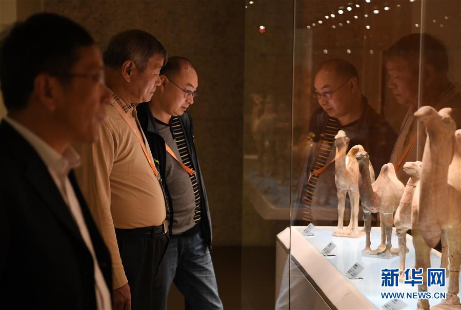 9月27日,在敦煌國際會展中心,參觀者欣賞“古道天馬——絲綢之路上的交通”展覽。新華社記者范培珅攝