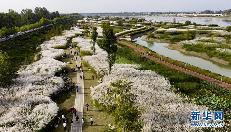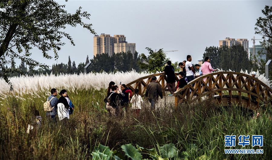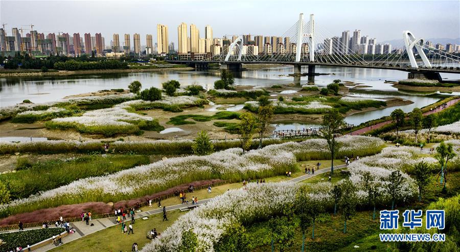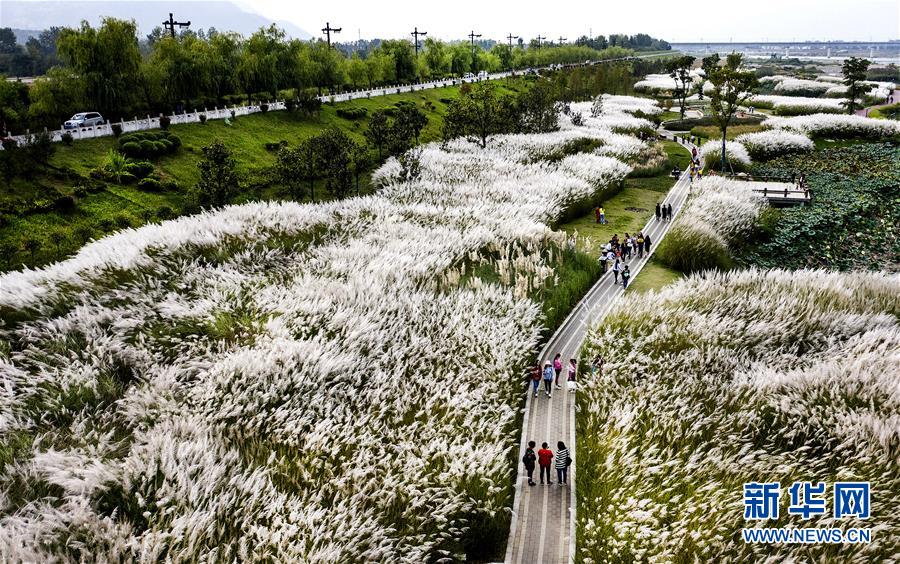 9月28日,人們在蘆花盛開的漢江濕地公園里游覽。新華社記者陶明 攝