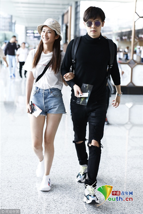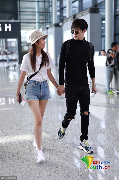 2018年9月26日,上海,穎兒、付辛博夫婦亮相機(jī)場。穎兒身穿白T恤和牛仔短褲露出纖細(xì)美腿十分養(yǎng)眼,一路挽著老公的手十分恩愛甜蜜,日前,穎兒還在節(jié)目上痛哭述說自己與付辛博新婚相處的苦楚。