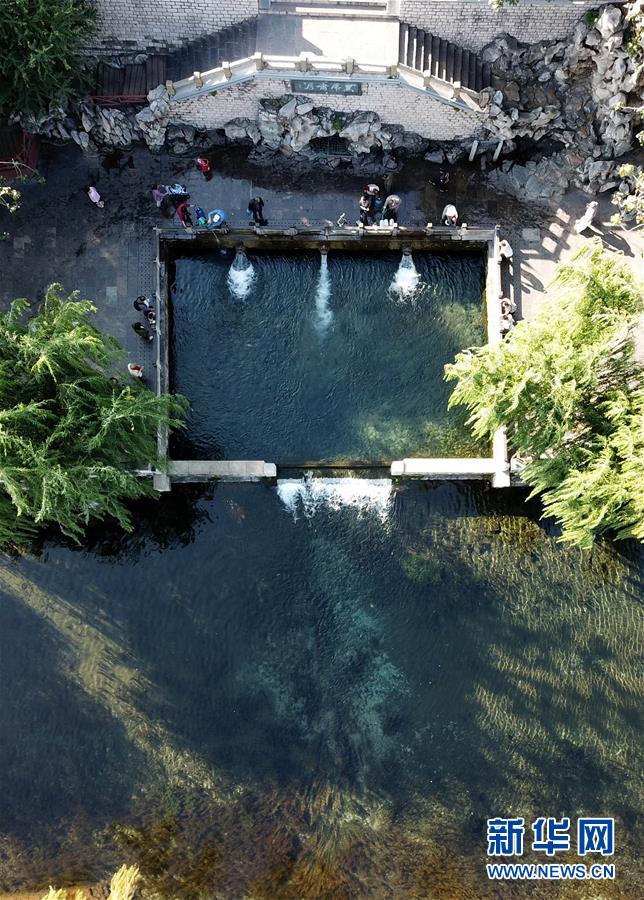 9月30日,游客在免費開放的濟南市黑虎泉游覽(無人機拍攝)。近年來,山東積極推進國有景區(qū)免費開放工作,截至目前,山東實現(xiàn)免費開放的國有景區(qū)已達(dá)286處。新華社記者徐速繪攝