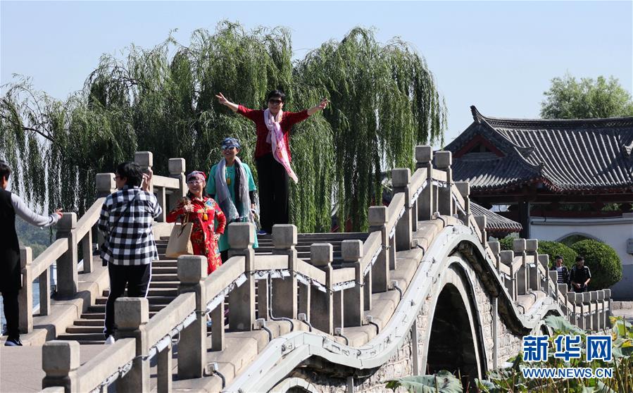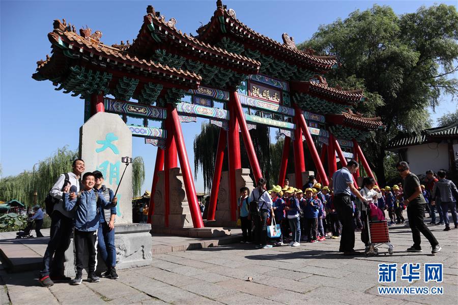 9月30日,游客在免費開放的濟南市大明湖景區(qū)游覽。近年來,山東積極推進國有景區(qū)免費開放工作,截至目前,山東實現(xiàn)免費開放的國有景區(qū)已達(dá)286處。新華社記者徐速繪攝
