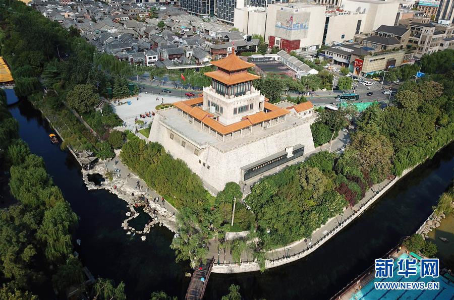 這是免費開放的濟南市解放閣景區(qū)(9月30日無人機拍攝)。近年來,山東積極推進國有景區(qū)免費開放工作,截至目前,山東實現(xiàn)免費開放的國有景區(qū)已達(dá)286處。新華社記者徐速繪攝
