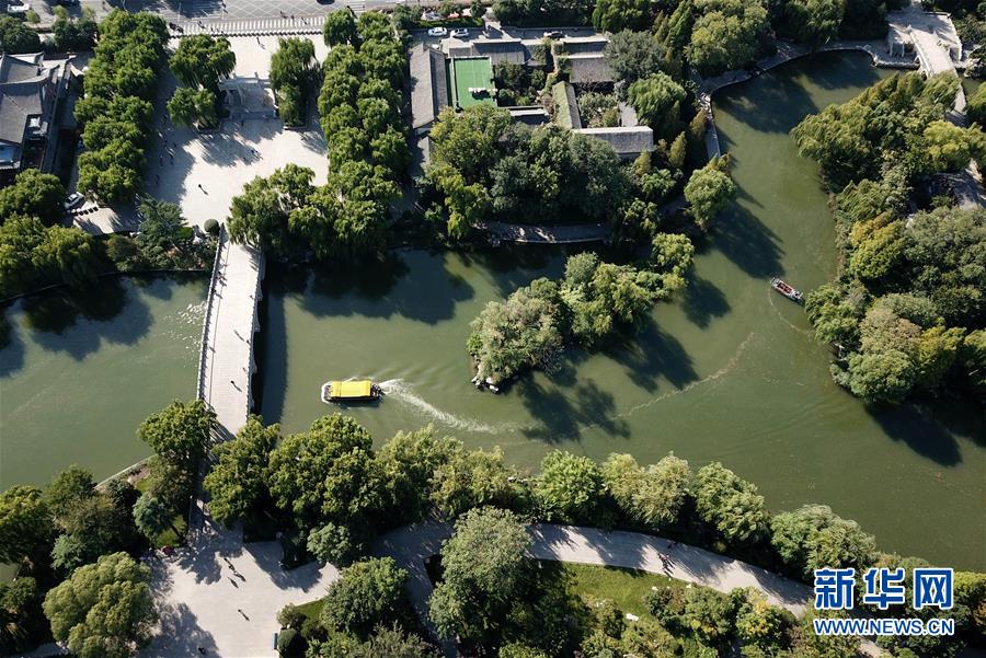 這是免費開放的濟南市大明湖景區(qū)(9月30日無人機拍攝)。近年來,山東積極推進國有景區(qū)免費開放工作,截至目前,山東實現(xiàn)免費開放的國有景區(qū)已達(dá)286處。新華社記者徐速繪攝