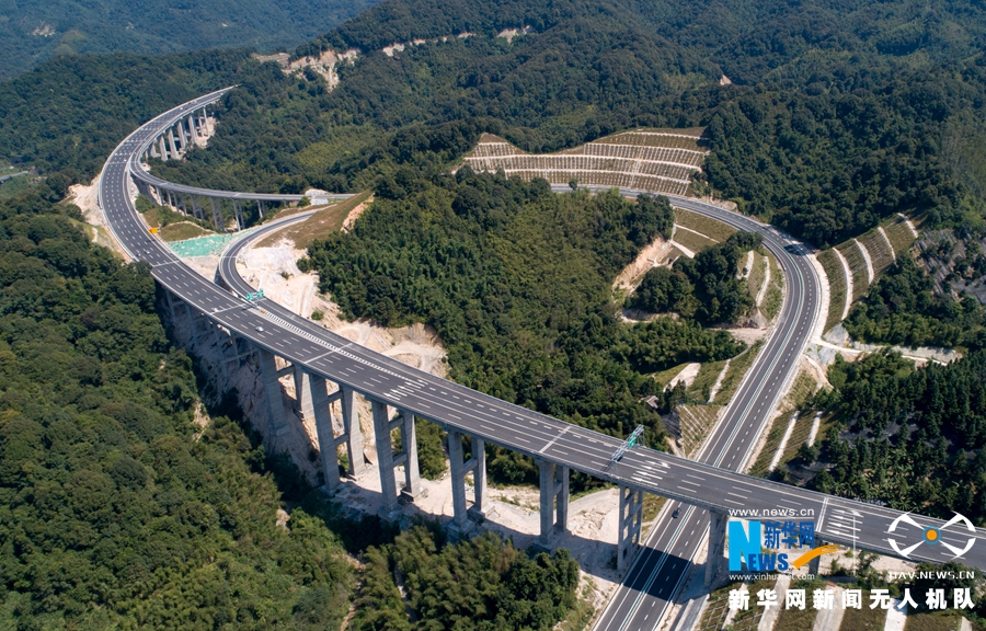 這是改擴(kuò)建工程施工后的廈蓉高速南靖縣和溪路段(無人機(jī)拍攝)。新華網(wǎng) 肖和勇 攝