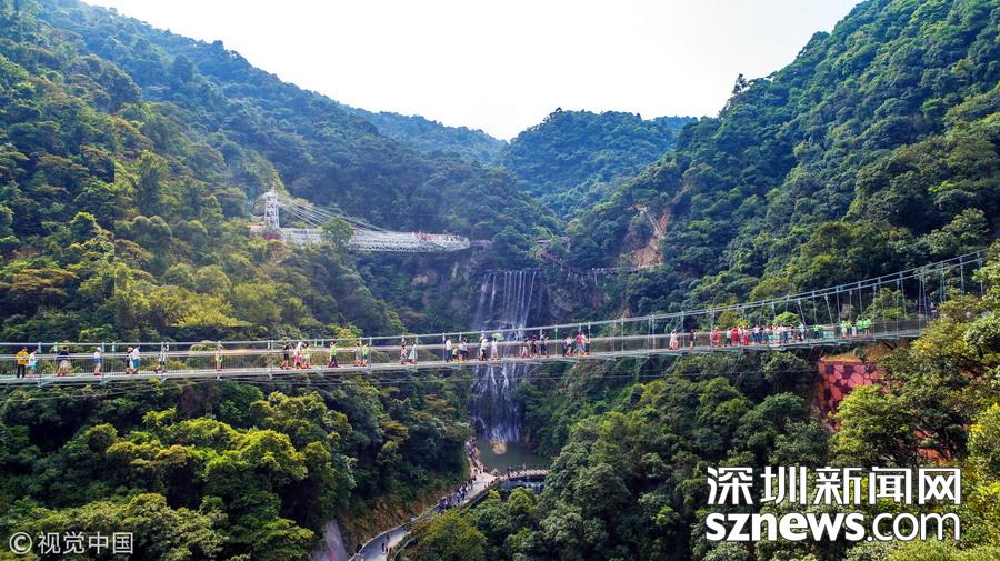 廣東清遠(yuǎn):臺(tái)風(fēng)“山竹”過后 最長(zhǎng)玻璃橋安然無恙