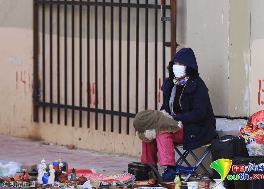 2018年10月7日,黑龍江省哈爾濱市,清晨,哈市溫度僅有5℃,在道外靖宇街,出地?cái)偟娜撕凸鋽偟氖忻?,紛紛穿上羽絨服與棉服御寒。