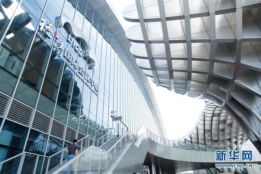 2018年10月9日,浙江湖州,聯(lián)合國(guó)世界地理信息大會(huì)會(huì)場(chǎng)設(shè)計(jì)頗為壯觀。11月,聯(lián)合國(guó)世界地理信息大會(huì)將在德清縣舉行,如今該大會(huì)會(huì)址已啟用,各項(xiàng)設(shè)施已基本完備。