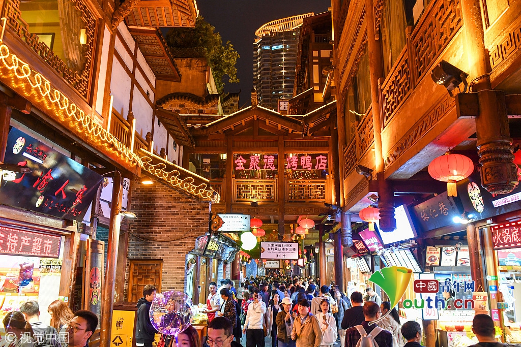 2018年10月8日,重慶,國(guó)慶長(zhǎng)假結(jié)束后,山城網(wǎng)紅景點(diǎn)洪崖洞依然處于暴擠狀態(tài),在抖音等短視頻平臺(tái)走紅以后,絢爛輝煌的洪崖洞夜景成為赴渝旅行第一打卡景點(diǎn)。