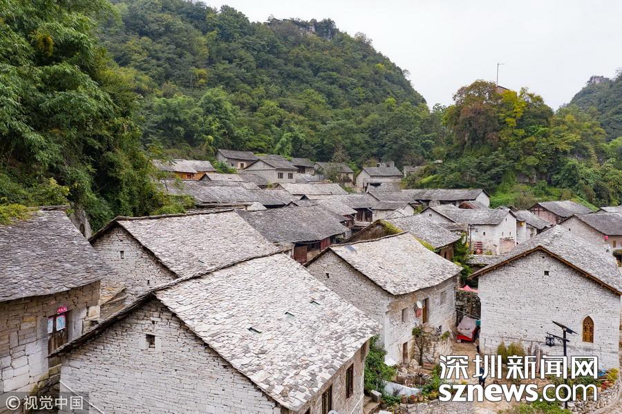 深圳新聞網(wǎng)訊 2018年9月27日,貴州安順,航拍坐落在群山中的鎮(zhèn)寧布依族苗族自治縣高蕩村。鎮(zhèn)寧高蕩村民居為石木結(jié)構(gòu)干欄式石板房,建造時間五、六十年至數(shù)百年不等,建筑保存基本完好。