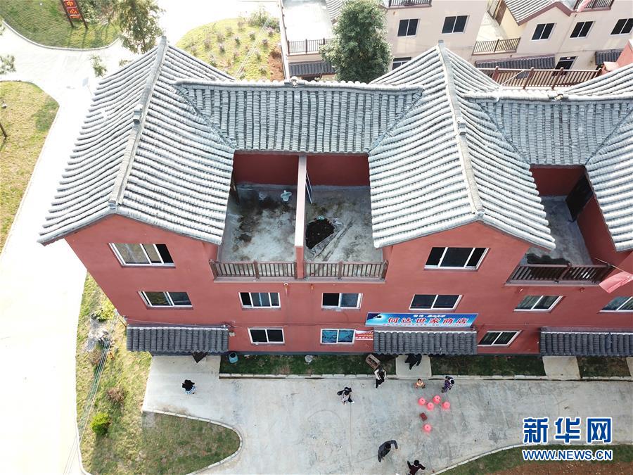 廣西南丹縣里湖瑤族鄉(xiāng)白褲瑤族同胞在將生活用品搬入新居(2月5日攝)。新華社記者 周華 攝
