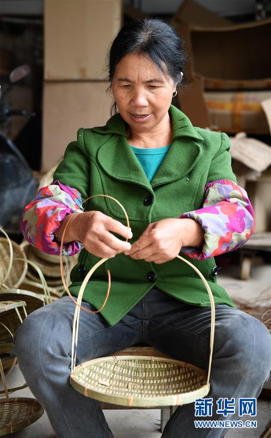 10月11日,在廣西靈山縣平南鎮(zhèn)硤木村一家竹編企業(yè),員工在加工竹編產(chǎn)品。新華社記者 陸波岸 攝