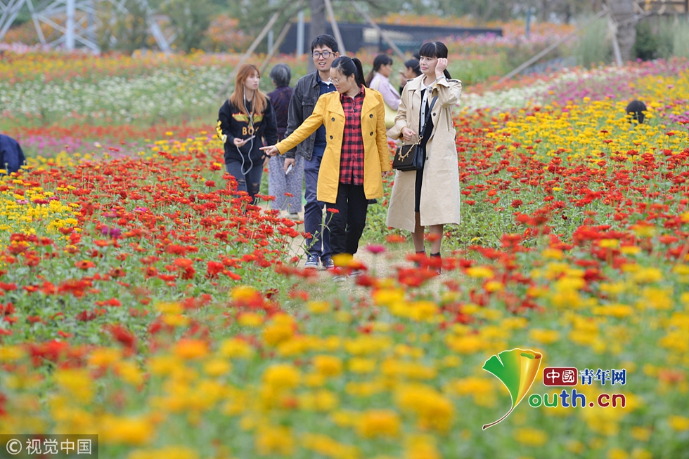 南京50萬株百日菊齊綻放 宛如彩虹落在田野中