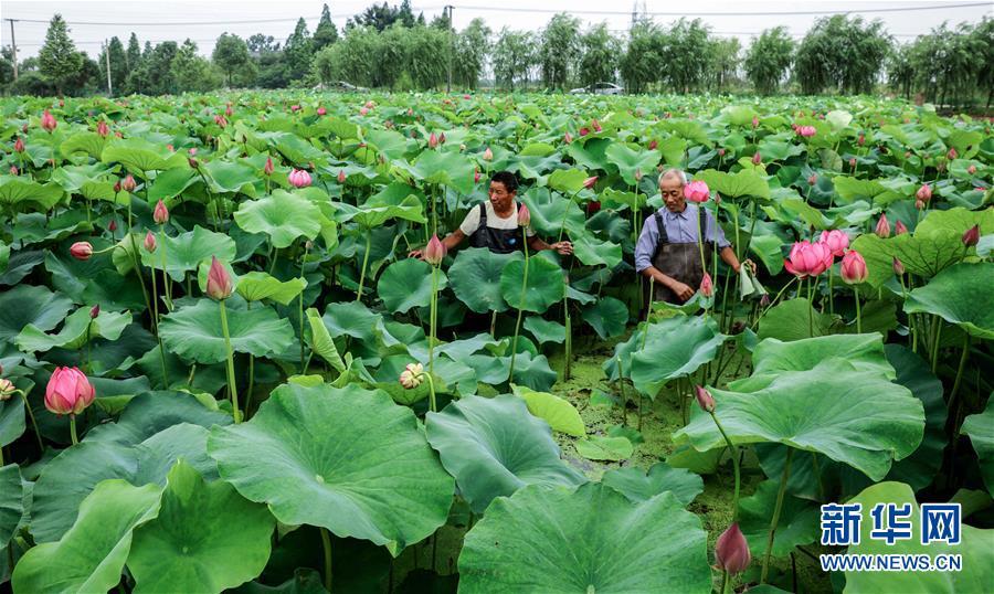 6月3日,荷農(nóng)們?cè)诤苫ɑ乩锾暨x準(zhǔn)備出售的觀賞性荷花。新華社記者 徐昱 攝