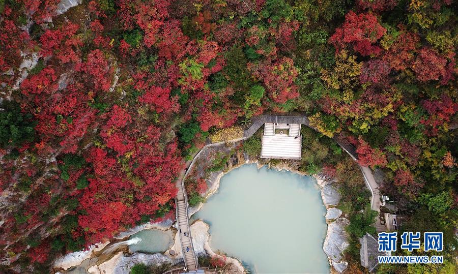 這是西狹頌景區(qū)秋景(10月16日無人機拍攝)。 新華社記者 陳斌 攝