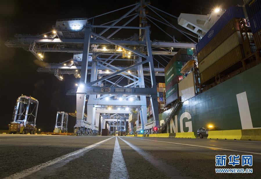 這是10月15日晚在比利時澤布呂赫港拍攝的正在進(jìn)行裝卸作業(yè)的集裝箱碼頭。新華社記者 葉平凡 攝