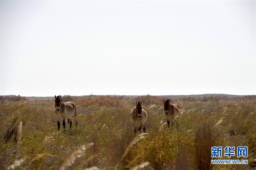 這是10月16日在敦煌西湖國(guó)家級(jí)自然保護(hù)區(qū)拍攝的普氏野馬。 新華社記者 胡偉杰 攝