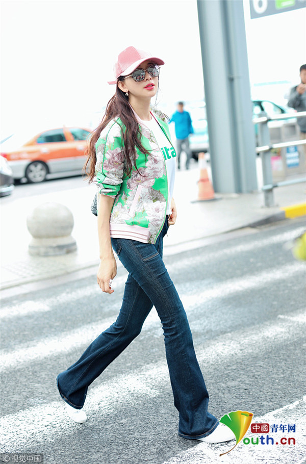 2018年10月16日,上海,林志玲亮相機(jī)場(chǎng),她身穿綠色印花外套搭配粉色鴨舌帽十分清新靚麗,乖乖坐小車抿嘴甜笑比V嘟嘴頻賣萌。