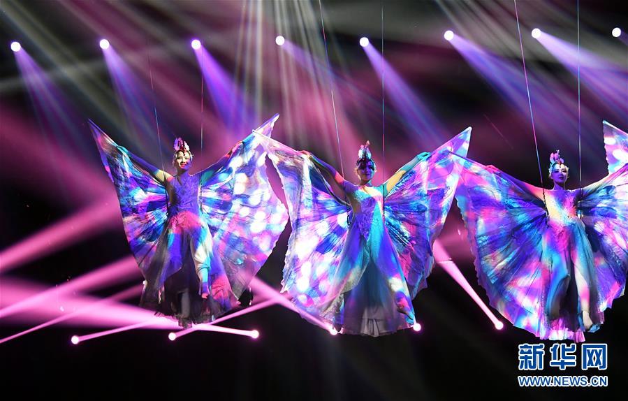 10月16日,演員在濮陽(yáng)國(guó)際雜技藝術(shù)節(jié)上表演雜技《如蝶飛舞》。新華社記者 朱祥 攝