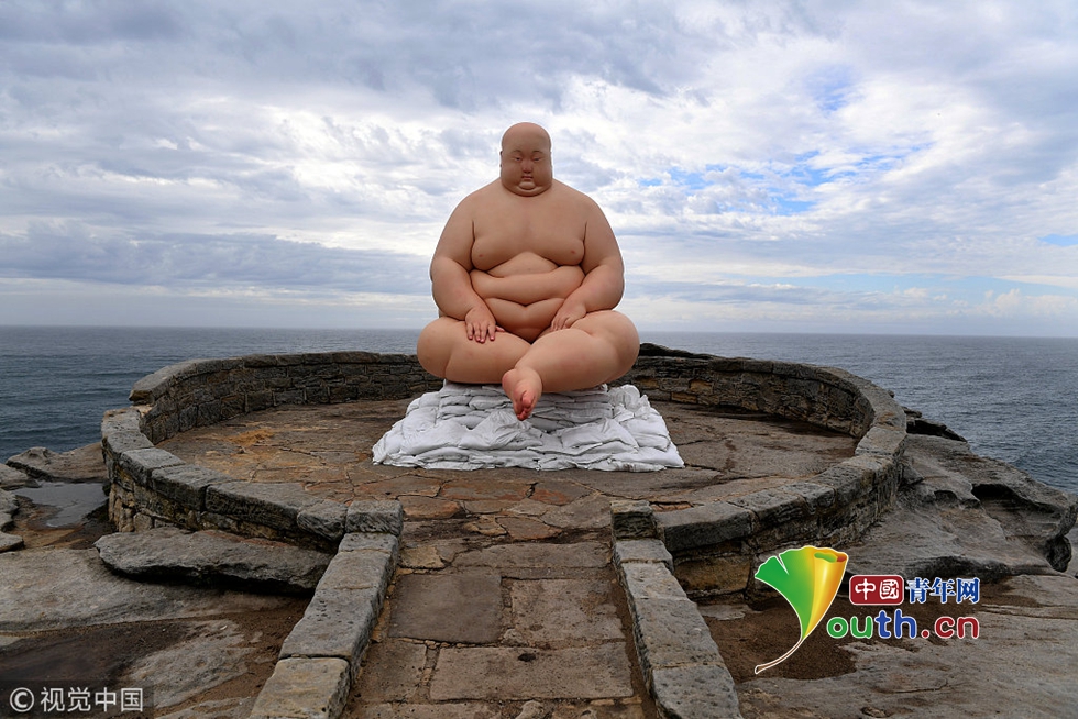 慎點!澳大利亞邦迪海灘雕塑展一幕