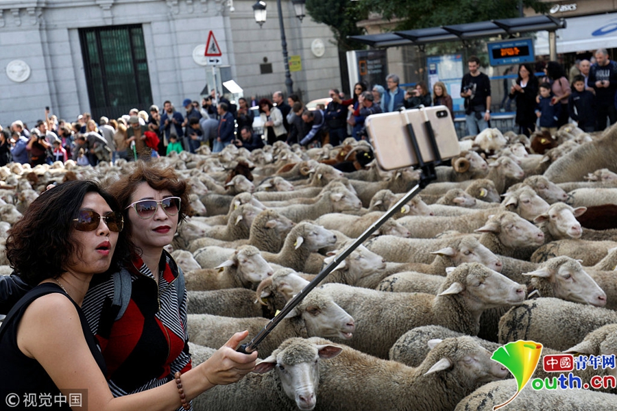 牧羊人驅趕成百上千只綿羊穿越馬德里市街。
