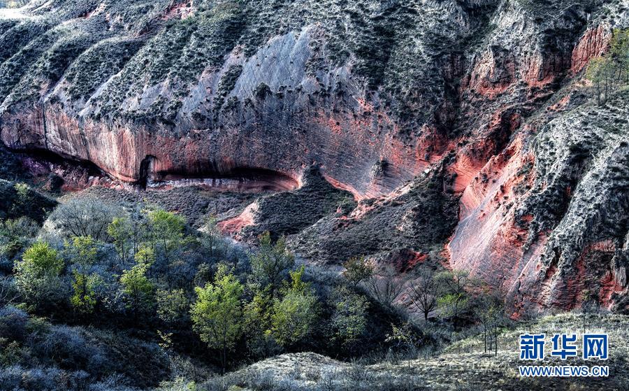 10月21日無人機(jī)拍攝的王家灣丹霞地貌。 新華社記者陶明攝