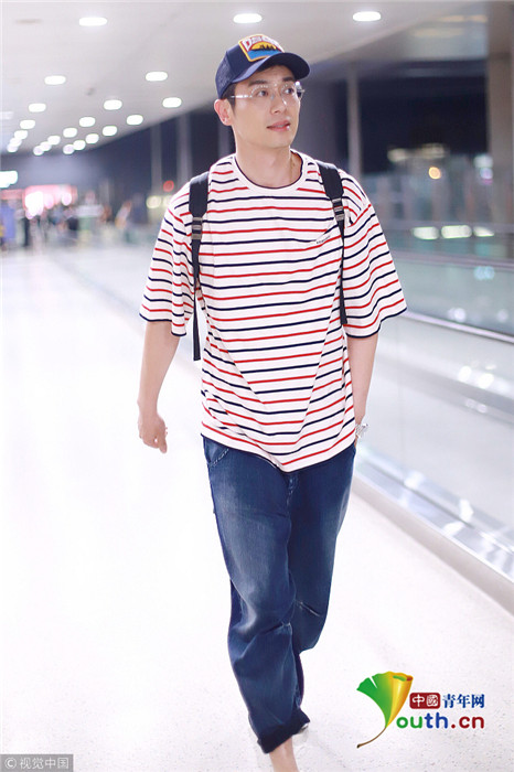 2018年10月22日,上海,朱亞文現(xiàn)身機場。他頭戴棒球帽,身穿條紋短袖搭配休閑哈倫褲顯得年輕又時尚,立減十歲大叔變潮男,單手插袋抿嘴略顯痞氣。