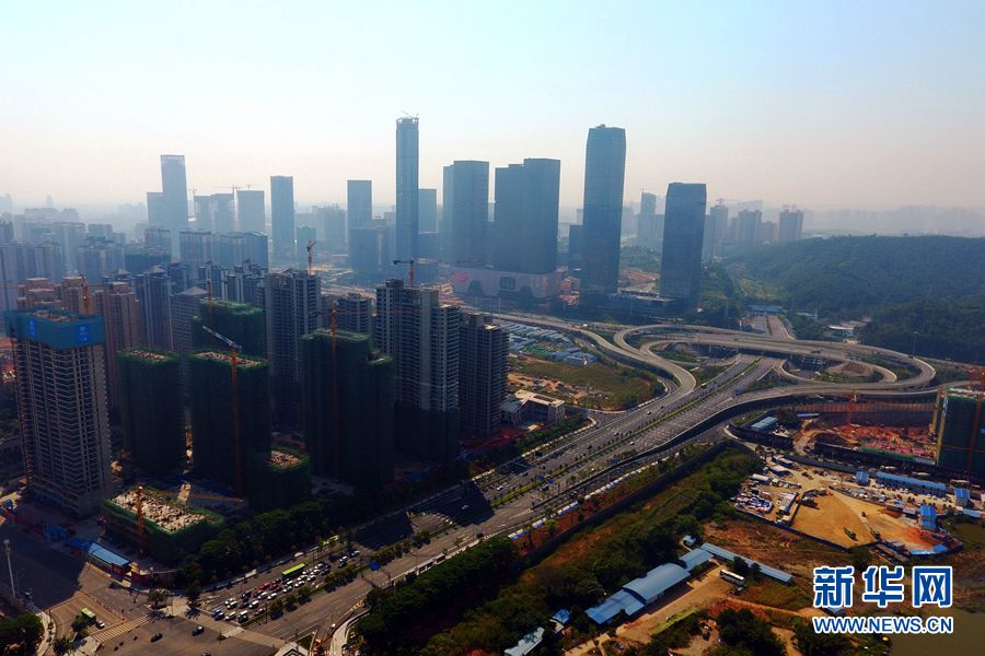 廣西南寧五象新區(qū)地處邕江之南,東起八尺江,西鄰水塘江,北起邕江,南望濱海,規(guī)劃面積約200平方公里。新區(qū)將規(guī)劃建設(shè)成為南寧市構(gòu)建區(qū)域性商貿(mào)物流基地、先進制造業(yè)基地、面向東盟的大型企業(yè)總部基地及文化交流展示合作的重要樞紐、信息中心及金融中心的重要支撐的現(xiàn)代新城。圖為無人機航拍建設(shè)中的五象新區(qū)(攝于2018年10月7日)。新華網(wǎng)發(fā) 韋秀玲攝