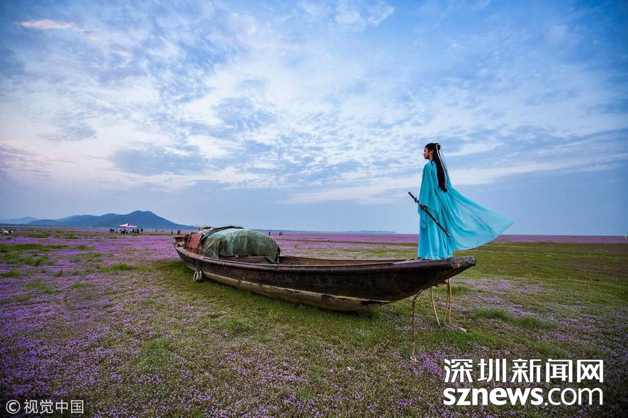 深圳新聞網(wǎng)訊 2018年10月23日,南昌,游人在江西鄱陽(yáng)湖都昌濕地蓼子花海內(nèi)游玩。連日來(lái),中國(guó)第一大淡水湖江西鄱陽(yáng)湖濕地大面積蓼子花開(kāi)放,秋景宜人,紫色的花海吸引大批游客前來(lái)賞景游玩。