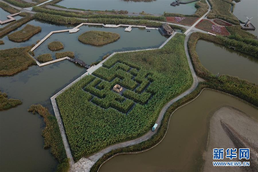 10月24日無人機(jī)拍攝的杭州灣國(guó)家濕地公園。 時(shí)值深秋,位于浙江寧波的杭州灣國(guó)家濕地公園在落日余暉下呈現(xiàn)出一幅美麗的畫卷。 新華社記者 黃宗治 攝