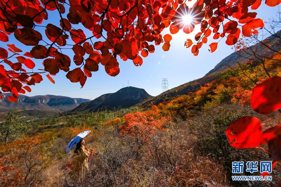 10月24日,游客在河北省武安市賀進(jìn)鎮(zhèn)后臨河村觀賞紅葉。 金秋時(shí)節(jié),位于太行山區(qū)的河北省武安市賀進(jìn)鎮(zhèn)后臨河村的紅葉進(jìn)入觀賞佳期。 新華社記者 王曉 攝