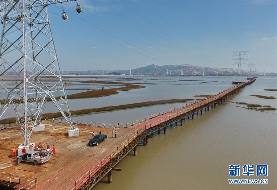 當日,福建省重點工程——莆田埭頭風電220千伏送出工程第一根導(dǎo)線順利牽引出線。為避免在海上構(gòu)筑圍堰,工程采用全國首創(chuàng)的全路徑鋼棧橋橫跨海灣方式,減少了土地占用,有助于保護生態(tài)環(huán)境,為跨海電力施工提供了實踐經(jīng)驗。